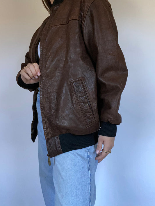 Yves Saint Laurent Brown Leather Bomber Jacket Size S/M