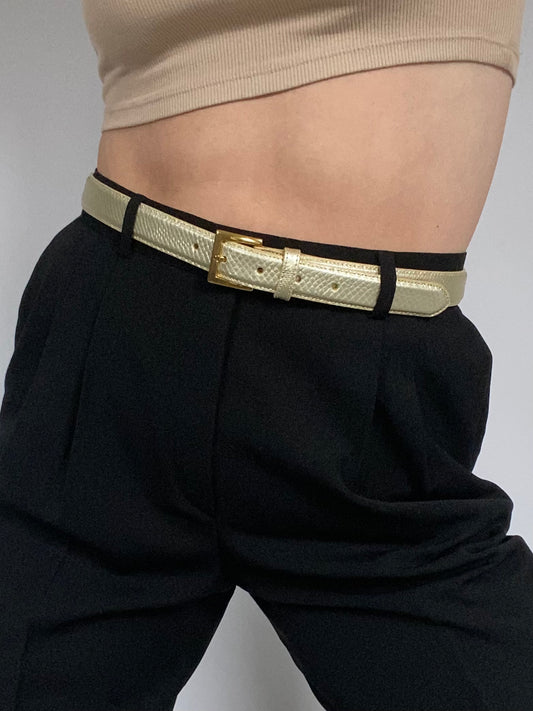Saks Fifth Avenue Metallic Gold Leather Belt Size L