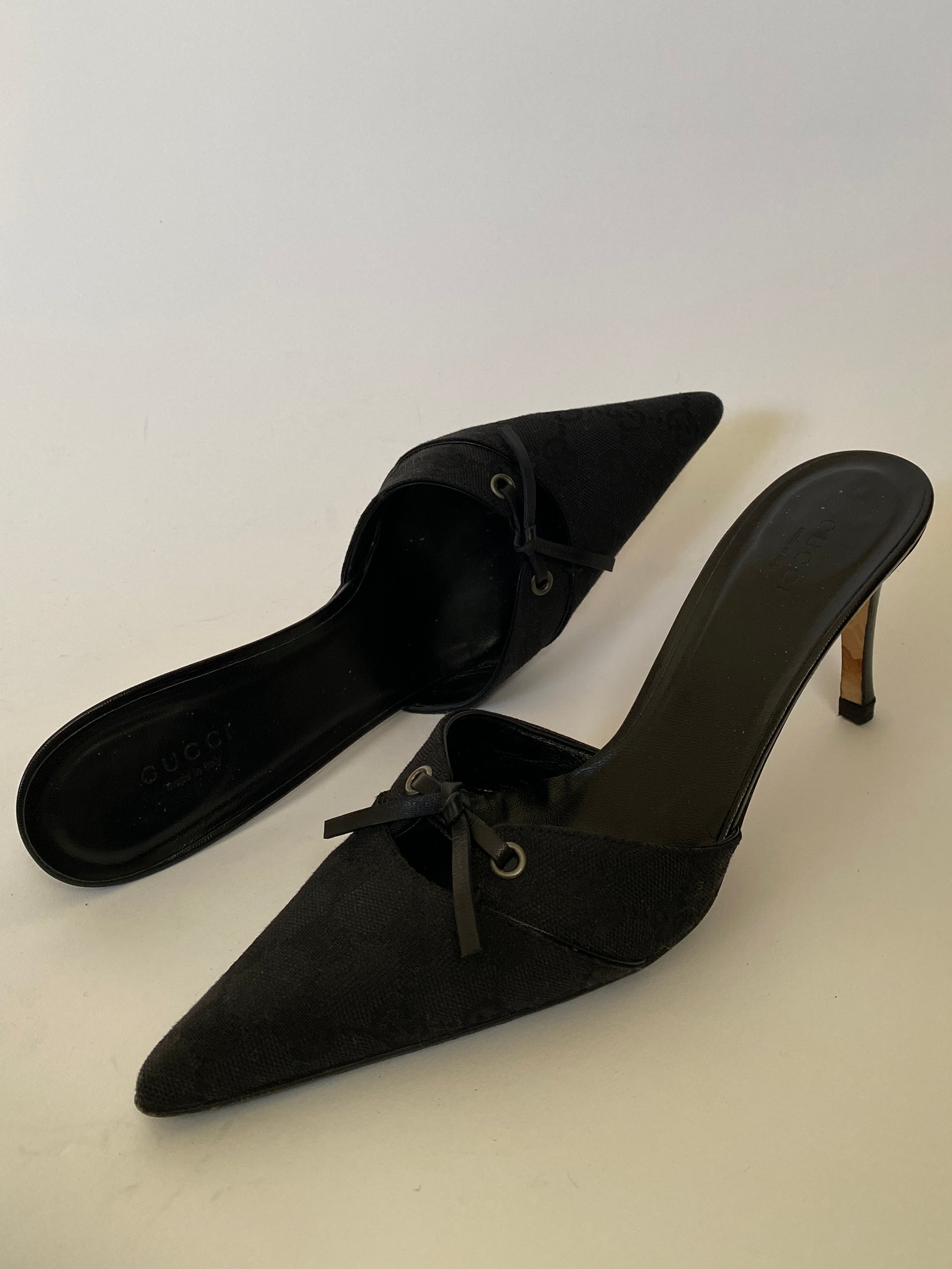 Gucci Monogram Logo Black Mules Size 8