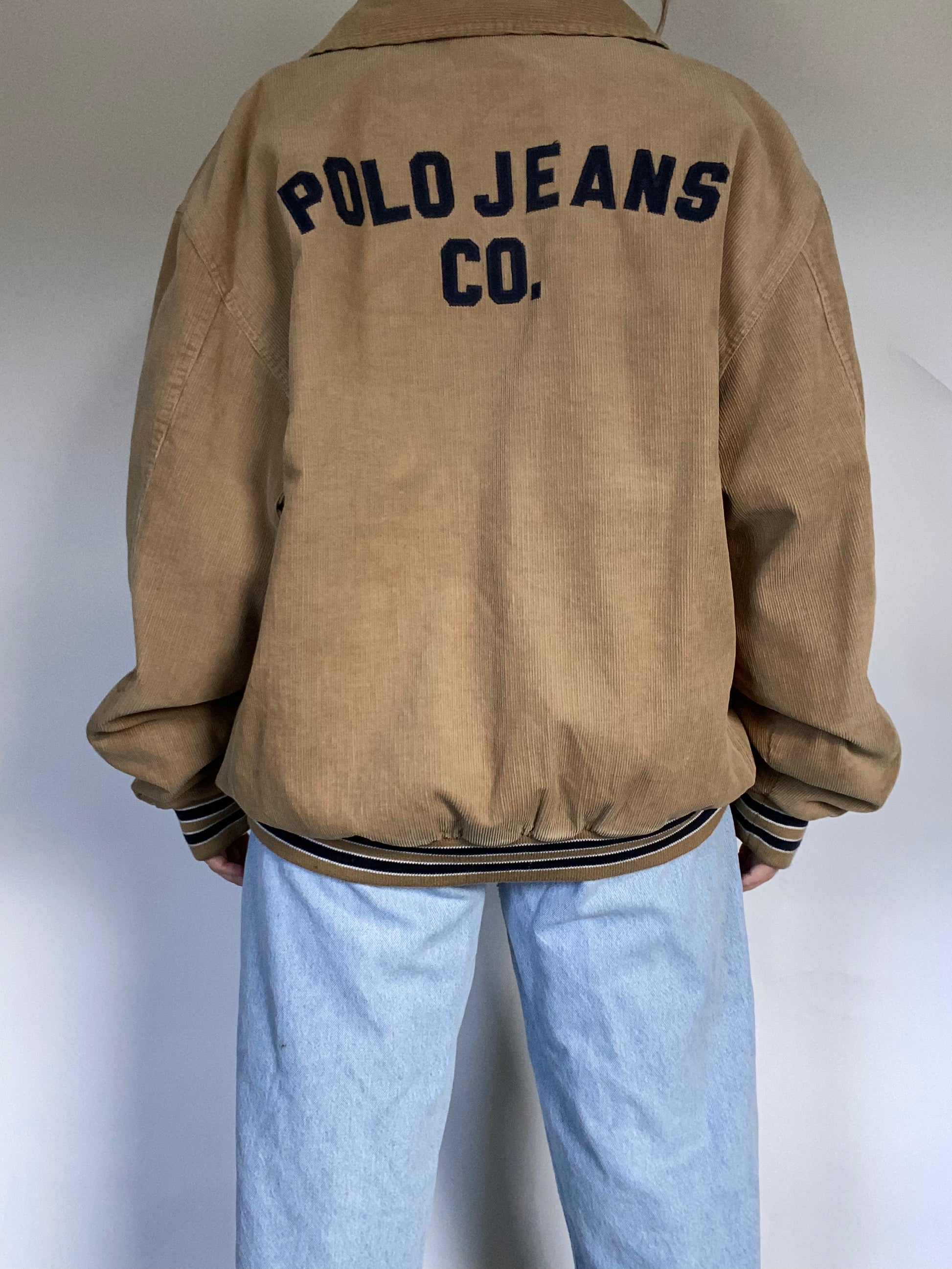 - KHAKI CORDUROY RALPH LAUREN VARSITY BOMBER JACKET